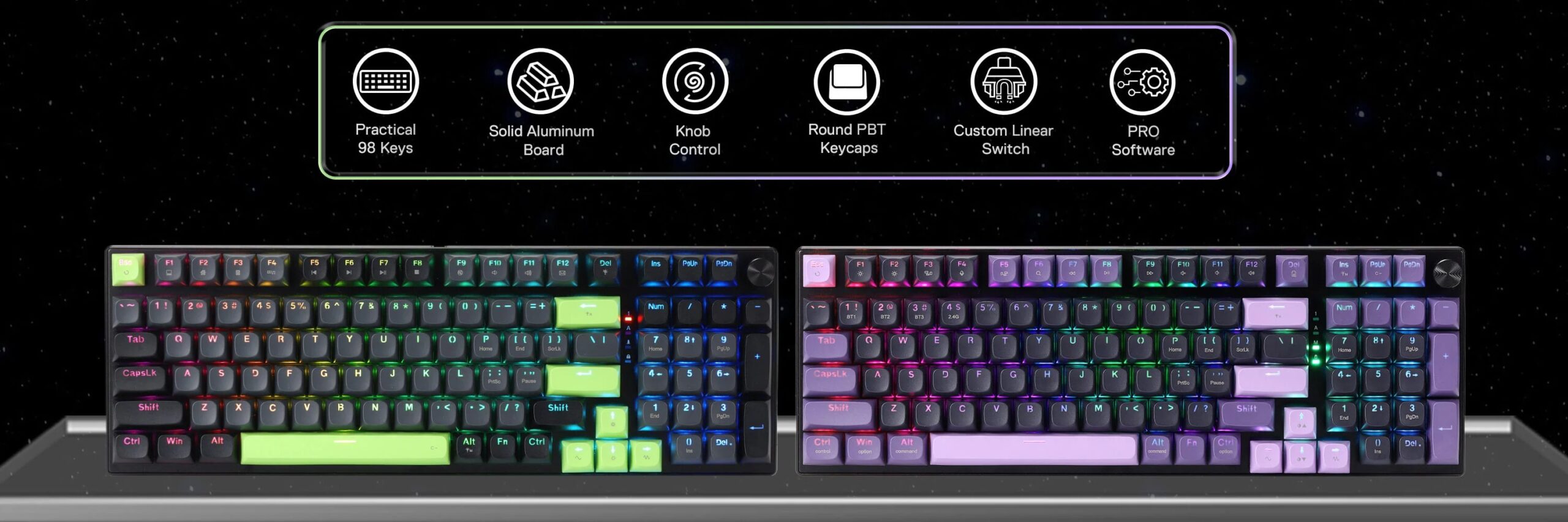 With thick-lubed custom linear switches combo with a gasket form factor, K740 PRO features cushioned rich linear travel with silky creamy and cozy typing feedback. The brand new upgraded socket is nearly all switches(3/5 pins) compatible.