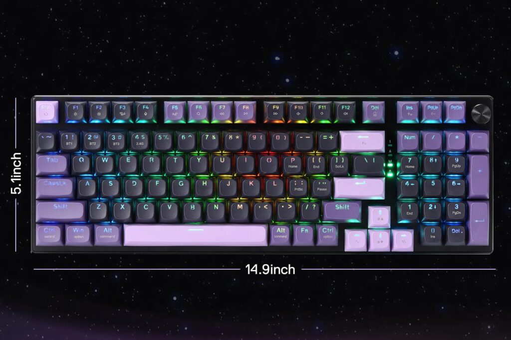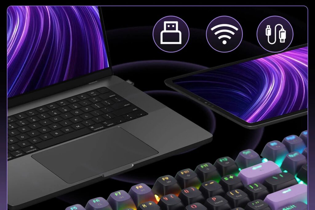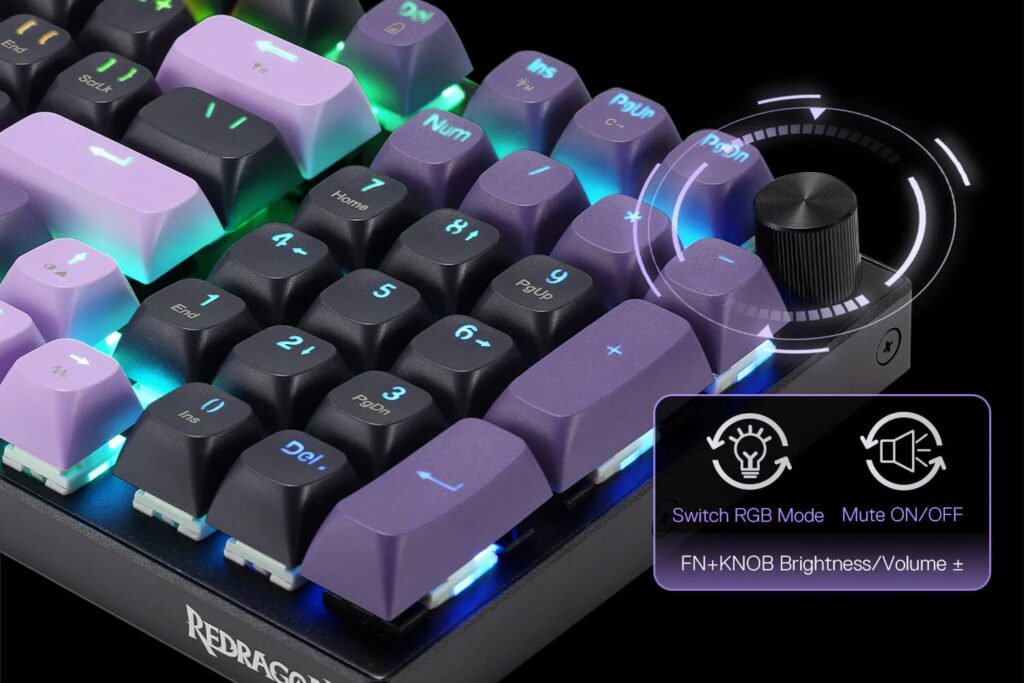 Redragon DHARMA K740 PRO Tri-Mode Mechanical Keyboard with Mambo Switches (Black & Purple)