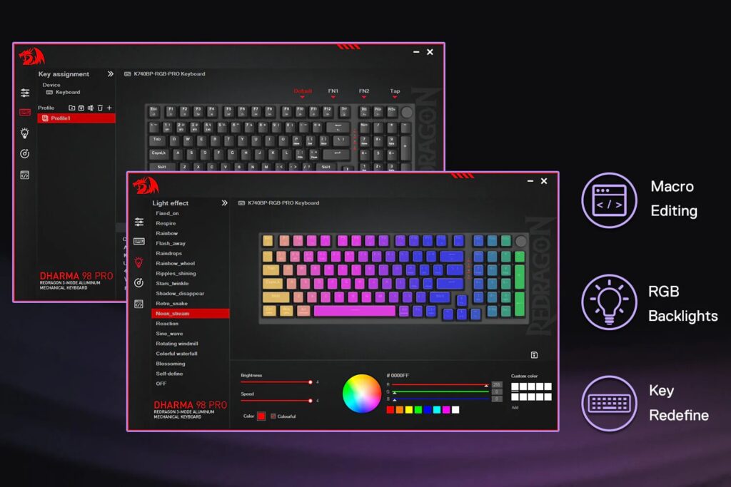 Expand your options using the available software to design your own new modes and effects found on redragonshop. Macros with different keybindings or shortcuts for more efficient work and gaming.