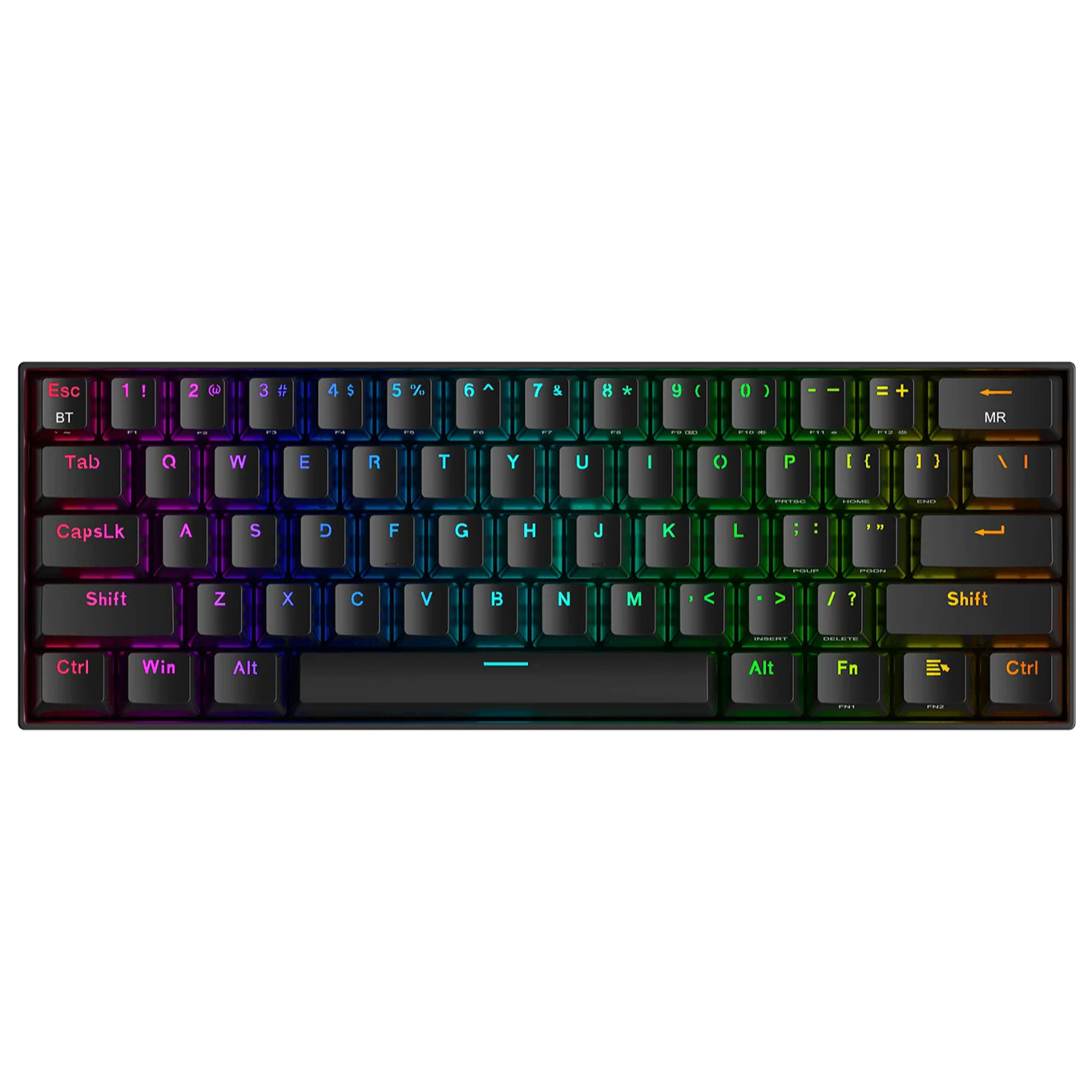Hot-swappable with almost all switch types in the market no matter 3-pin or 5-pin. Redragon K530 mini wireless gaming keyboard is equipped with pluggable OUTEMU red switches, which are linear, top-to-bottom switches. These switches require less force to press down and the keys feel smoother and easier to use. No tactile “bump” but responsive. A great choice for work and play!