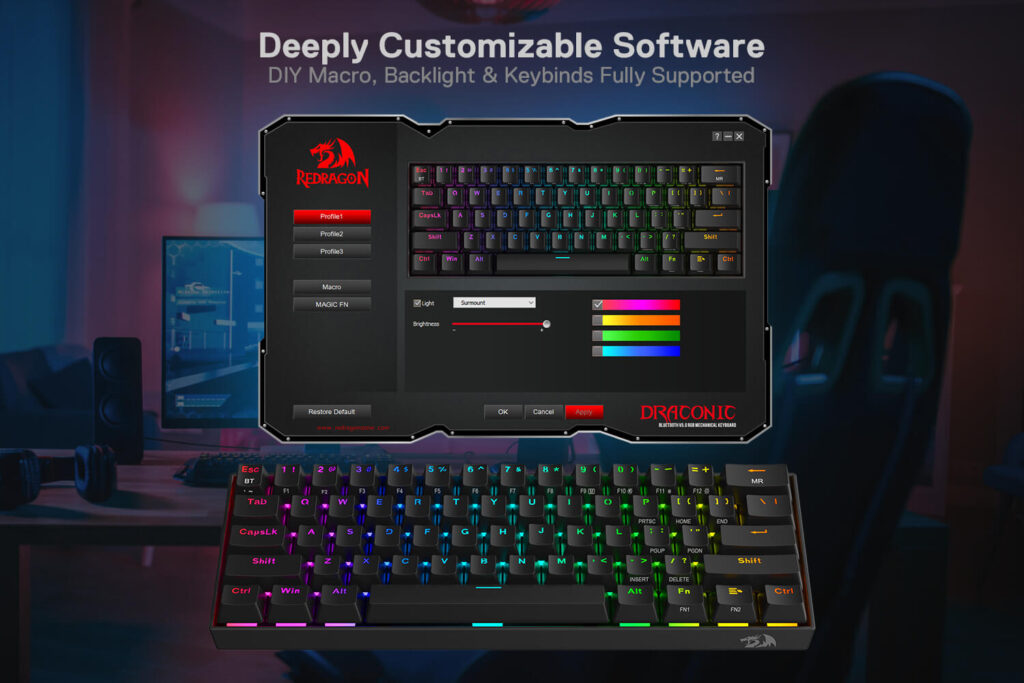 Redragon K530 RGB Draconic Wireless Mechanical Gaming Keyboard with Red Switches (Black)