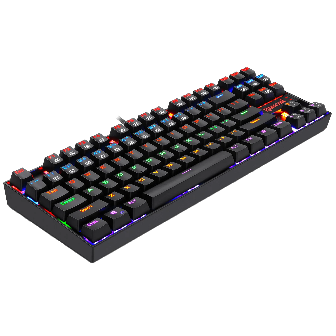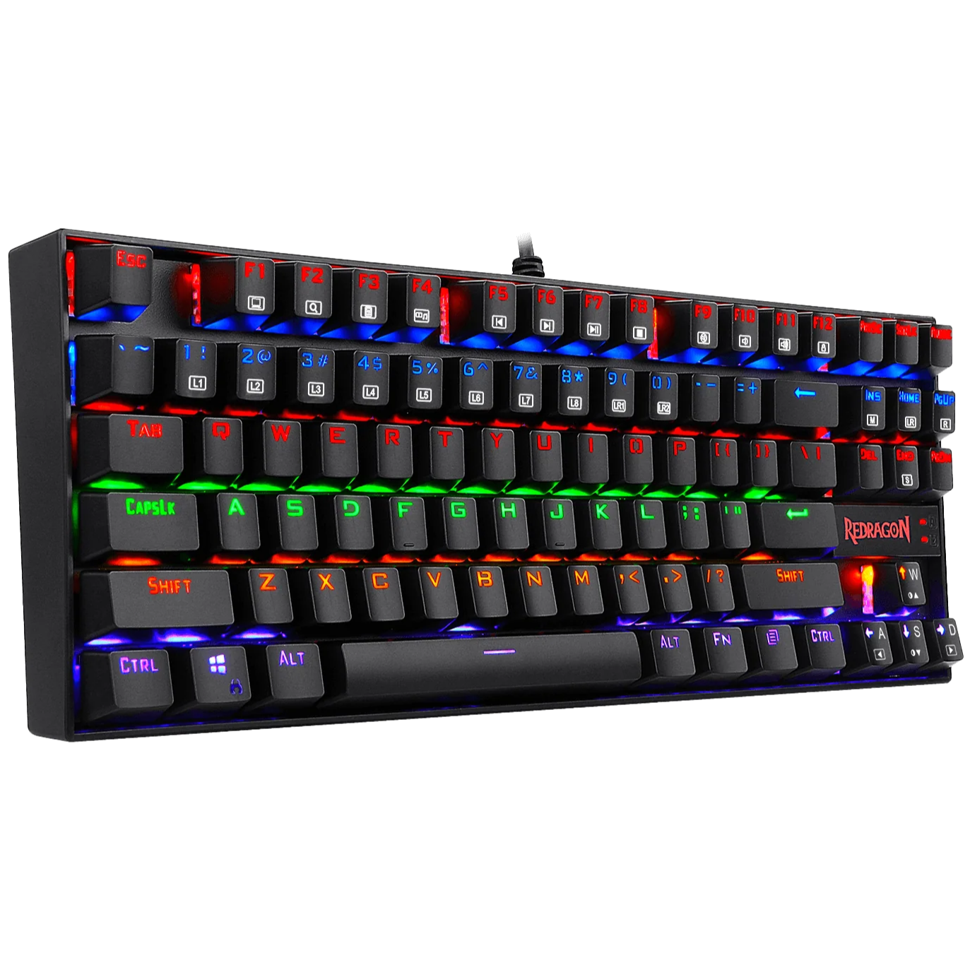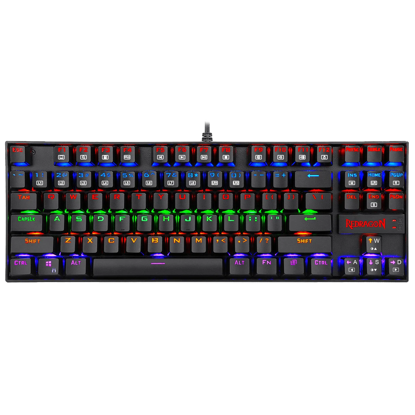 Tenkeyless compact mechanical gaming keyboard Redragon k552 tkl small compact with dustproof mechanical switches quiet click sound fast action with minimal resistance without a tactile bump feel.
