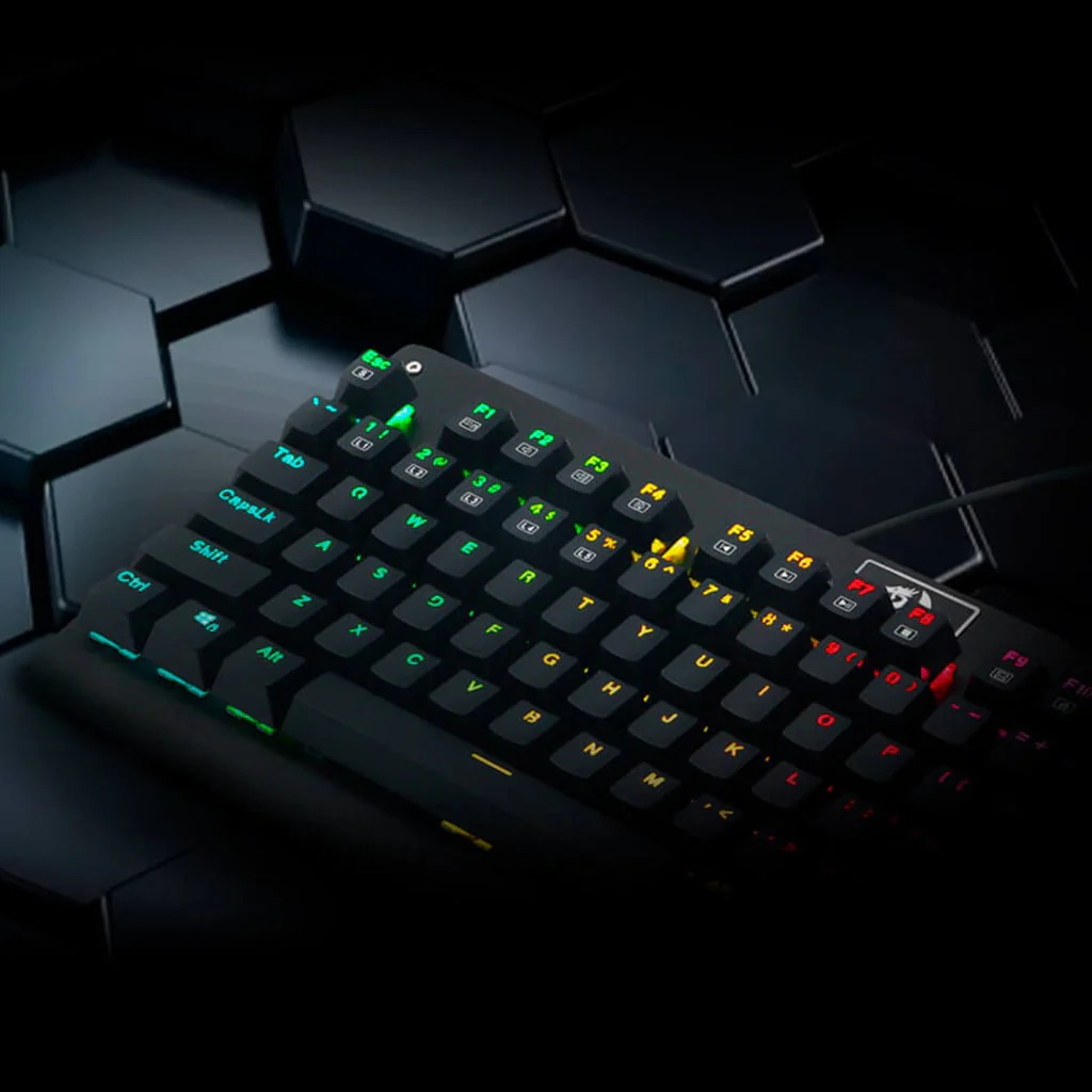 Redragon K568 RGB Dark Avenger Mechanical Gaming Keyboard is N-Key Rollover with 100% Anti Ghosting 87 Keys and waterproof design, it gives you 9 LED modes. An optimal choice for gamers, programmers, writers, typists and etc.
