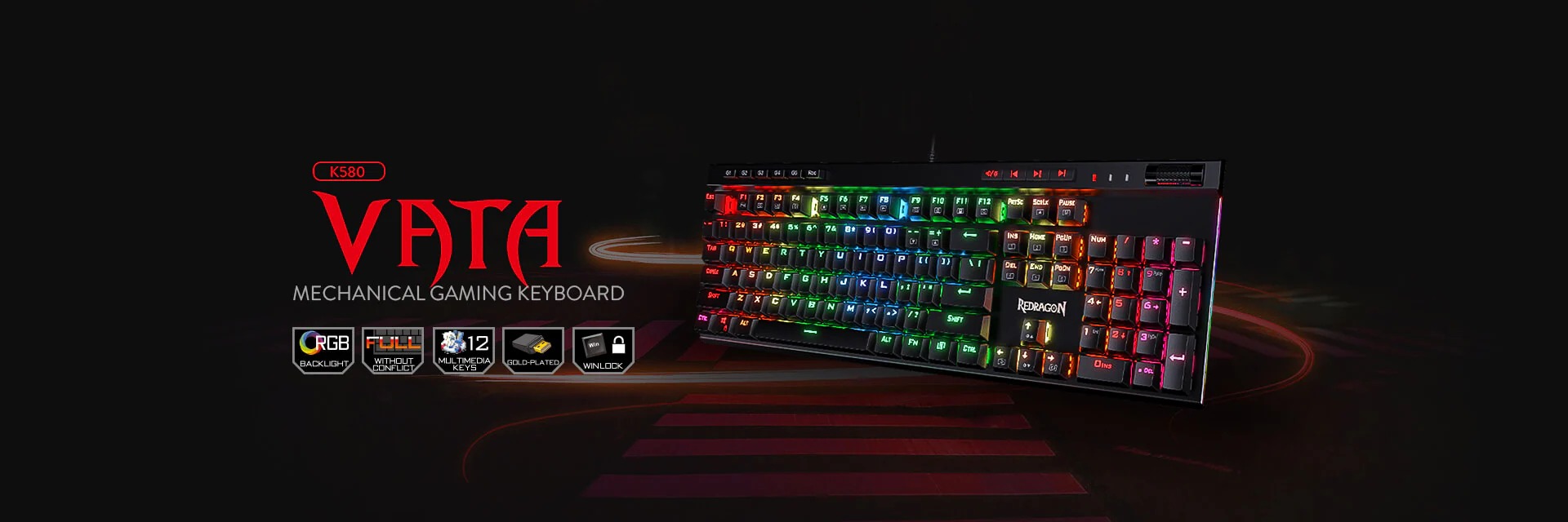 Redragon K580 VATA RGB Backlit Mechanical Gaming Keyboard (Black)