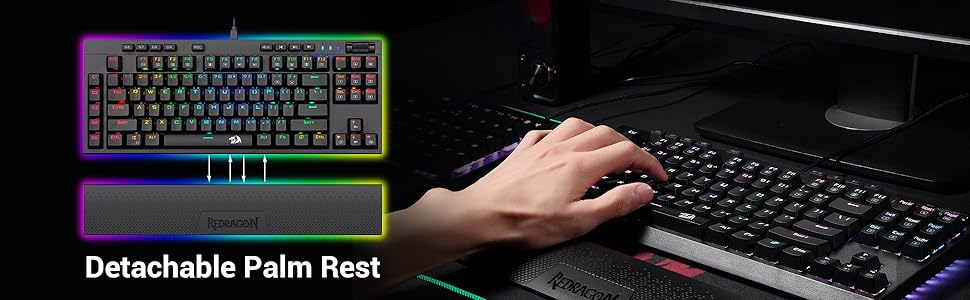 K588 has non-slip, ergonomic, splash-proof design including adjustable keyboard tilt feet and a magnetic wrist rest that can be detached. A 6-foot detachable USB-C cable is included. For optimal gaming performance, all 101 mechanical keys are conflict-free (n-Key Rollover).