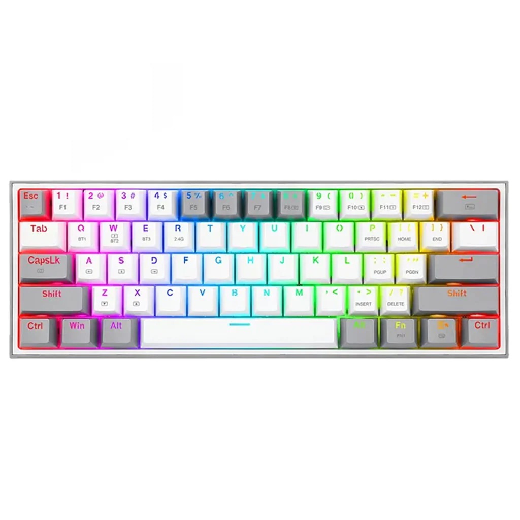 Redragon K616 FIZZ Pro RGB Bluetooth Wireless Mechanical Gaming Keyboard 61 Keys, Red Switches (White Grey)