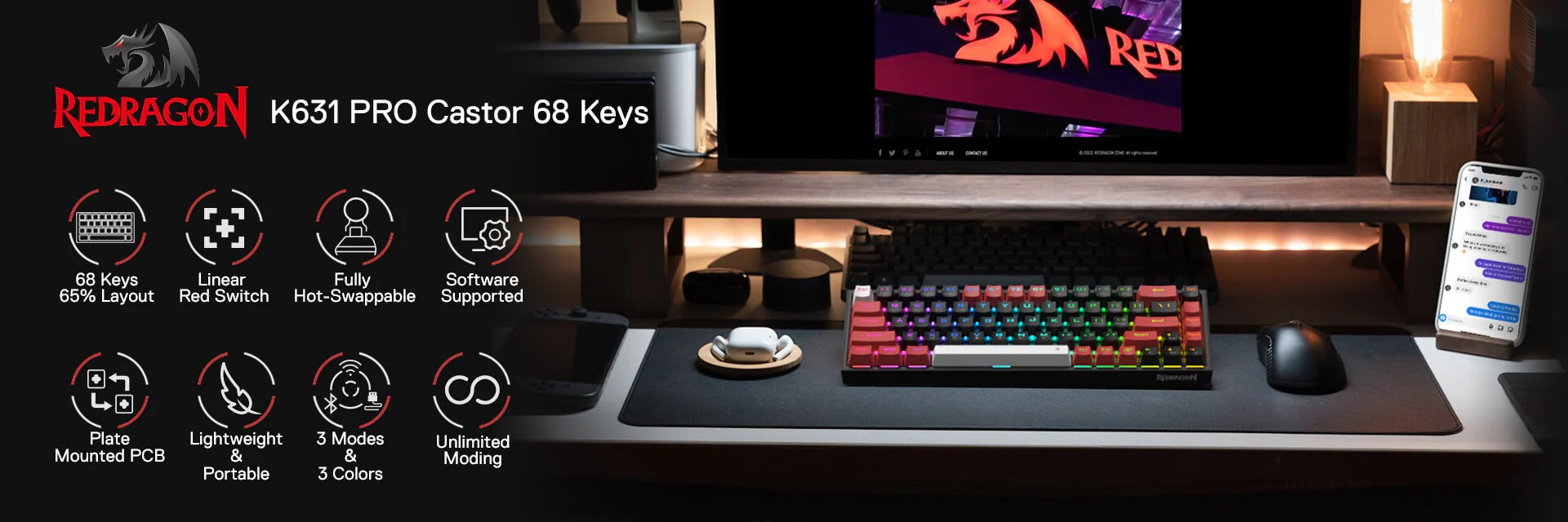 - 1 x Redragon K631 Pro Keyboard