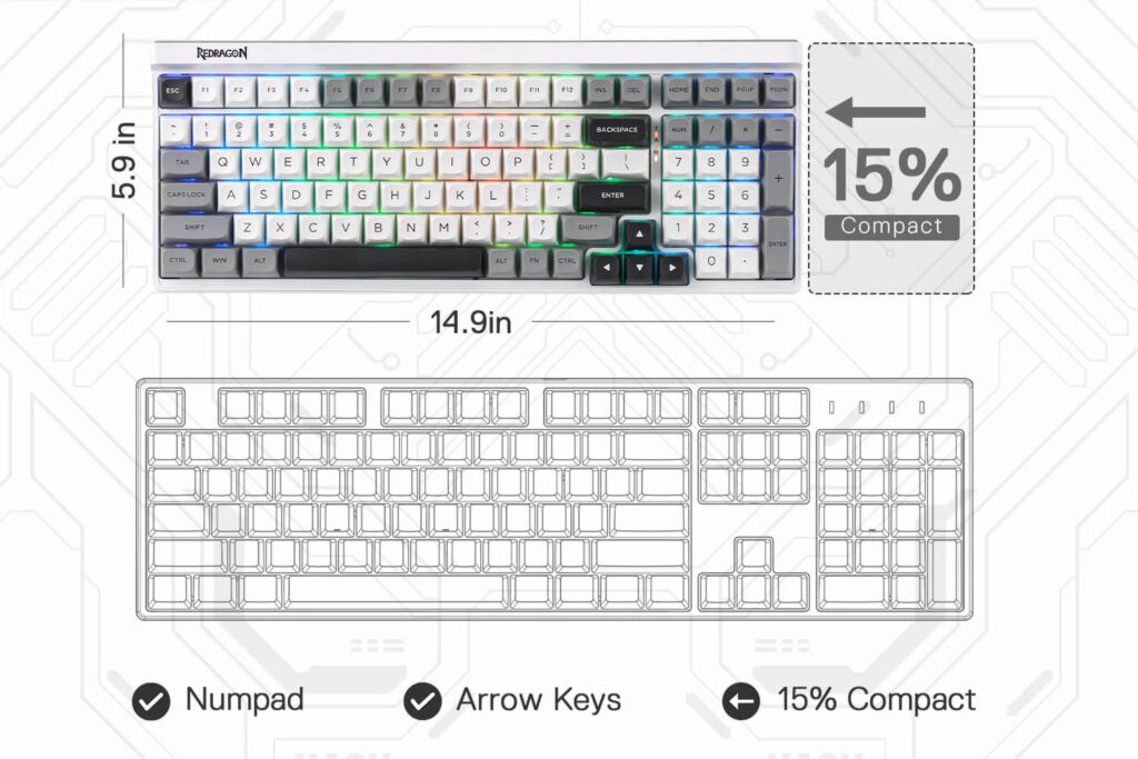 The 90% design keeps the original 100% standard layout fully functionary but reduces unnecessary space maximumly. Sacrifice 4 keys for the best user experience, keeping both practical and better compact as much as possible.