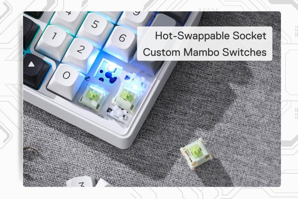 The brand new upgrade with nearly all switches(3/5 pins) compatible, the free-mod hot-swappable socket is available now. The exclusive next-level socket makes the switch mounting easier and more stable than ever.