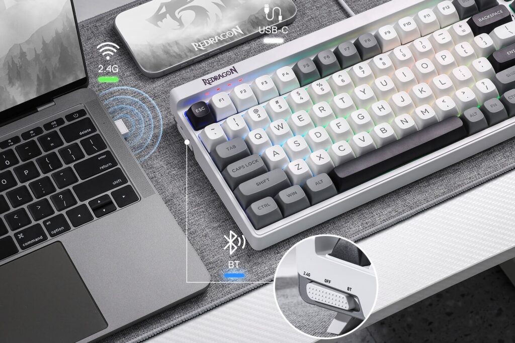 Geared with Redragon advanced tri-mode connection technology, USB-C wired, BT 3.0/5.0, 2.4Ghz wireless modes which make the user experience upgraded to another level in all fields.