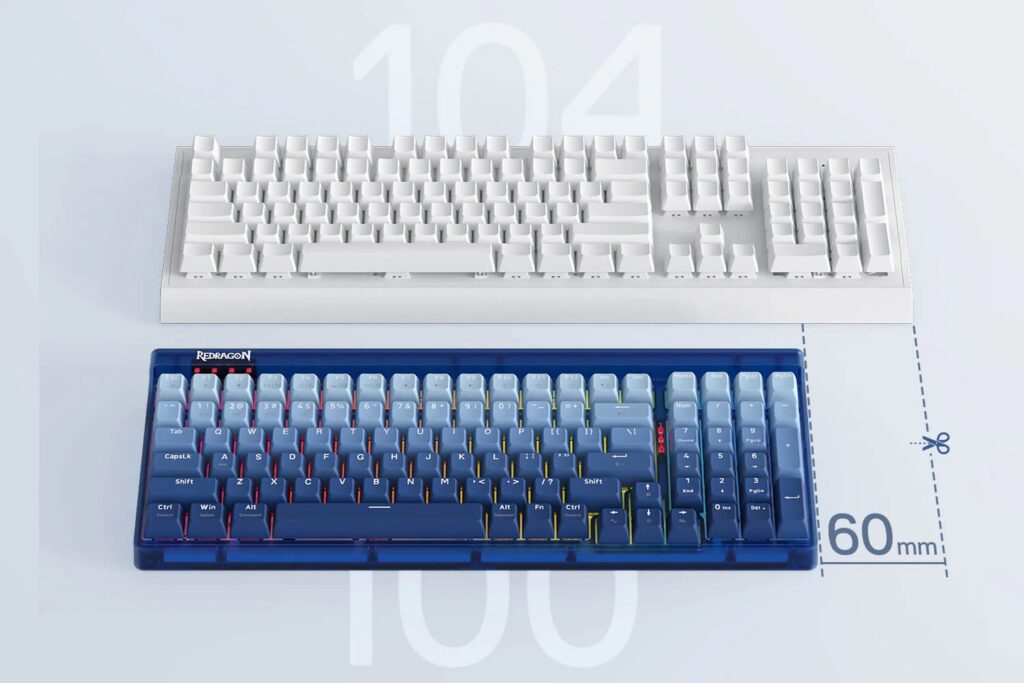 Immerse yourself in the gaming action with the Redragon K656’s 100 Keys Layout. This ingenious 90% design maintains the functionality of a full-sized keyboard while maximizing space. Experience the perfect blend of practicality and compactness, all-in-one gaming keyboard.