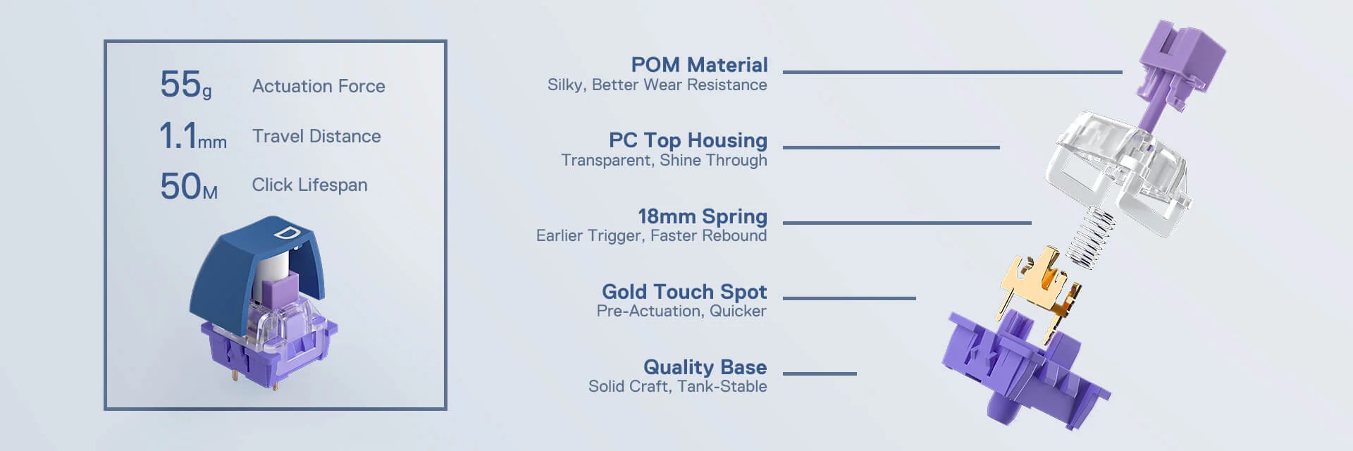 Enjoy Pure Switch Sound with Noise Dampening Foam