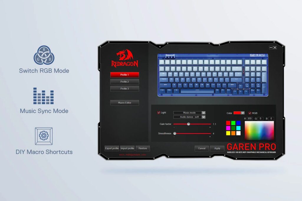 With Pro Software support, the Redragon K656 PRO offers you the freedom to design your own modes and effects. Create macros with different keybindings or shortcuts to make your work and gaming sessions more efficient.