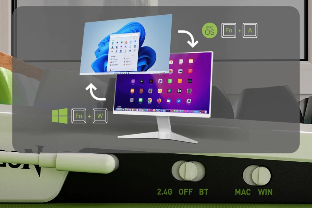 Seamlessly toggle between Windows and Mac systems with the convenience of the side button on the keyboard. Enjoy fluid transitions for enhanced productivity.