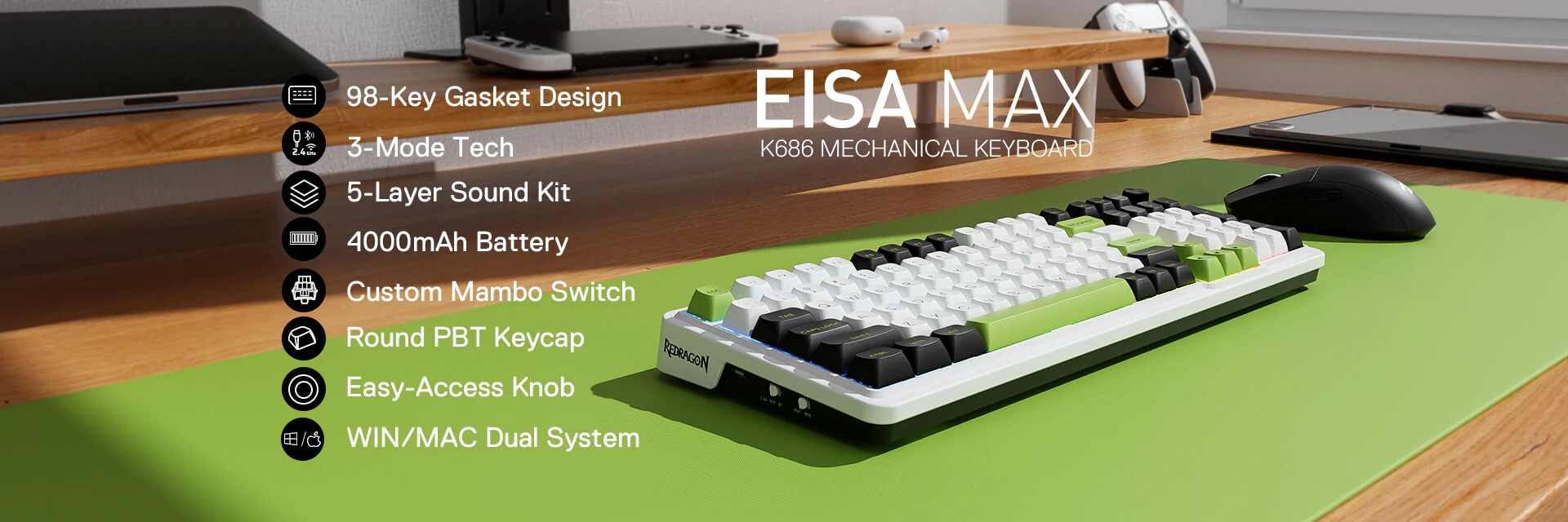 Redragon K686 EISA MAX 98-Keys Wireless Gasket Mechanical Gaming Keyboard