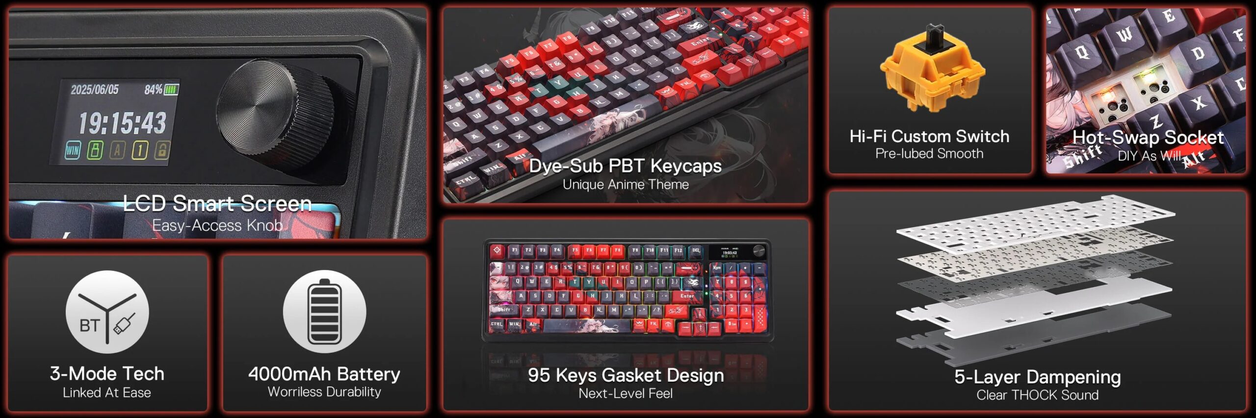 Redragon K719 PRO Wireless Gasket Hype Screen Anime Keyboard